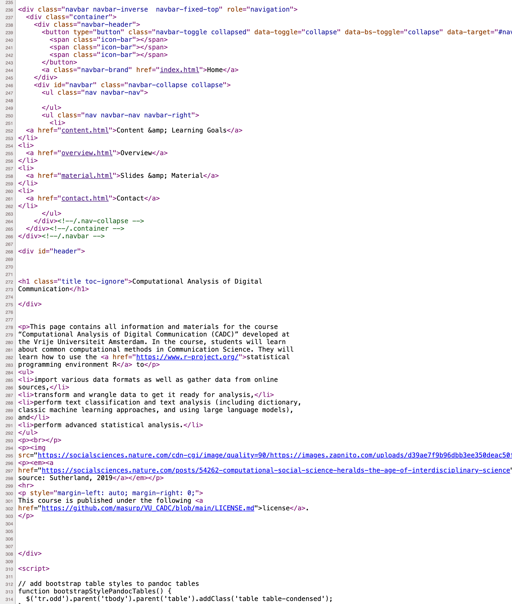 You will realize that this course has a comparatively steep learning curve. We will learn about research papers and recreate their analyses in R. It is thus generally recommended to follow all lectures and practical sessions! BUT: Despite some initial challenges, you will also experience a lot of self-efficacy: Learning R and computational methods is very rewarding and at the end, you can be proud of what you have achieved!