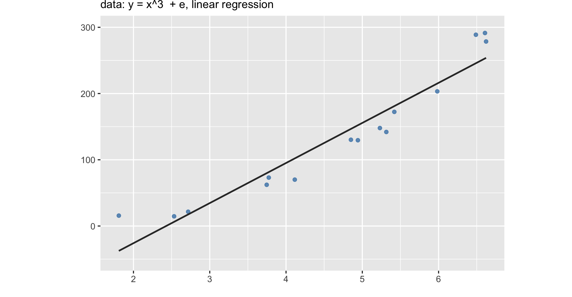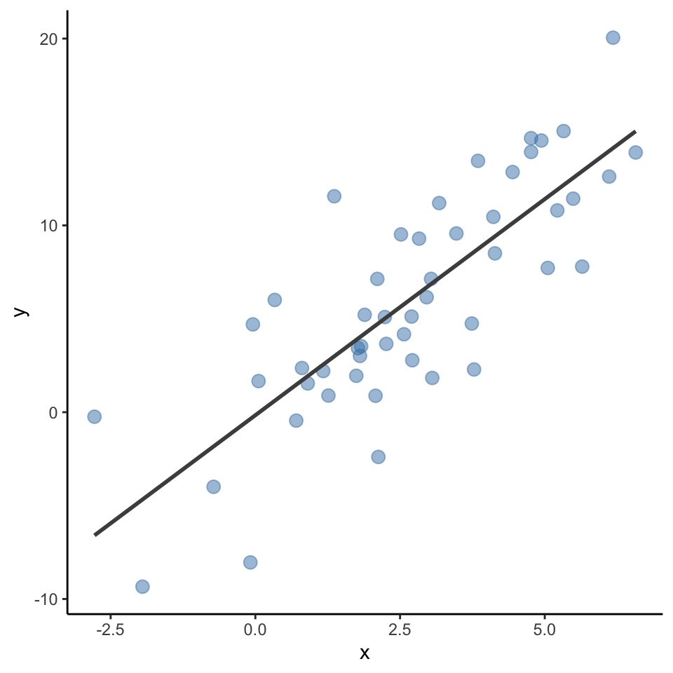 For example, despite not being in the data, x = -1 should be y = -2.47; x = 5 should be y = 11.41 based on the fitted line!
