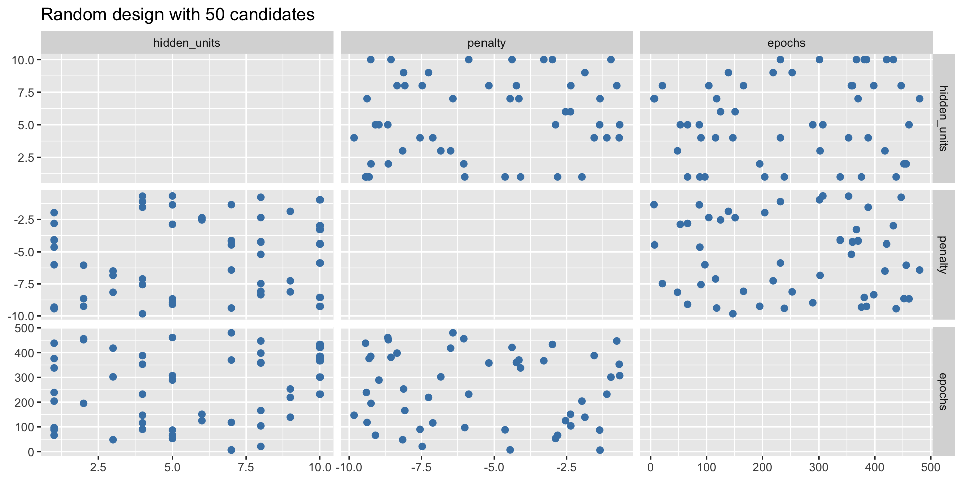 mlp_param |> grid_random(size = 1000) |> summary()We can plot the random combinations to get an idea what they will cover