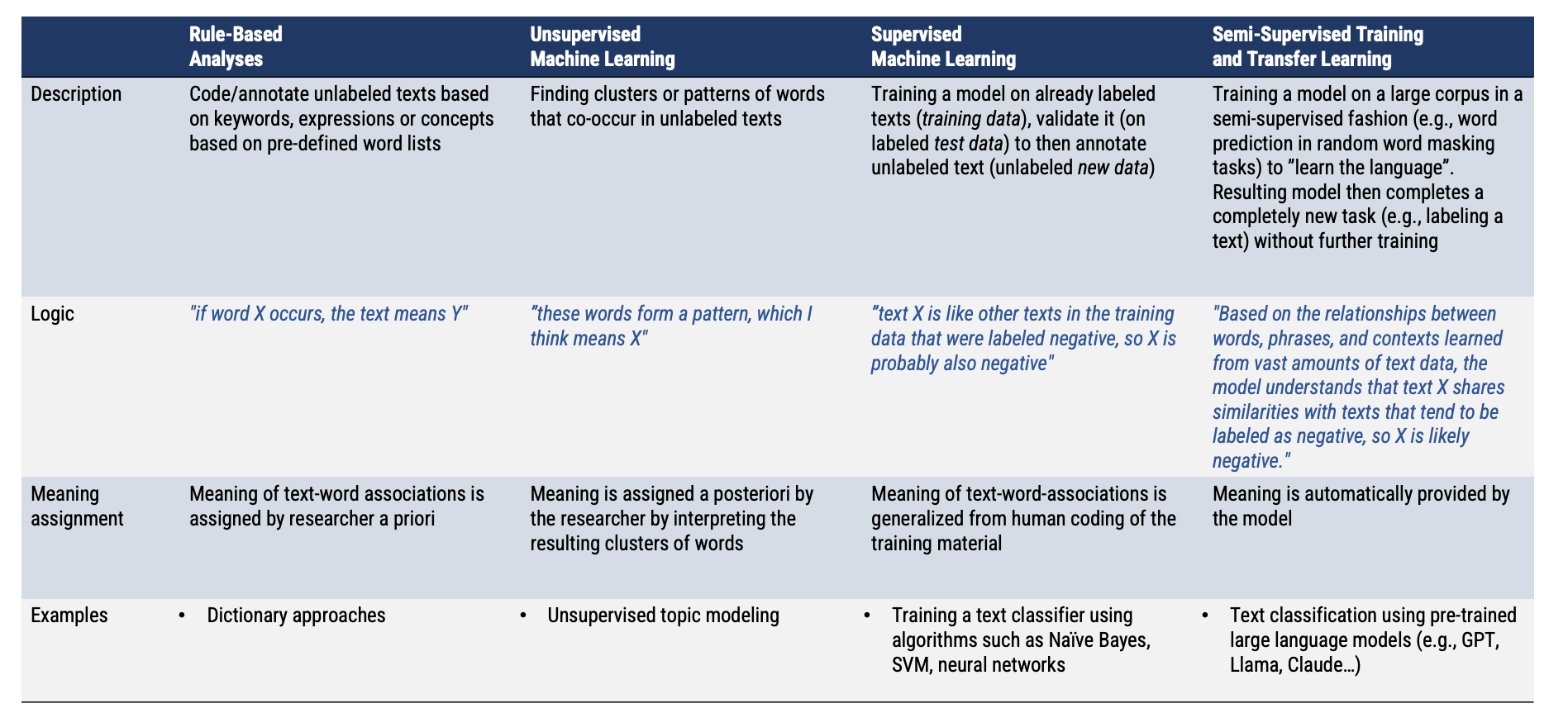 Boumans, J. W., & Trilling, D. (2016). Taking stock of the toolkit: An overview of relevant automated content analysis approaches and techniques for digital journalism scholars. Digital journalism, 4(1), 8-23.