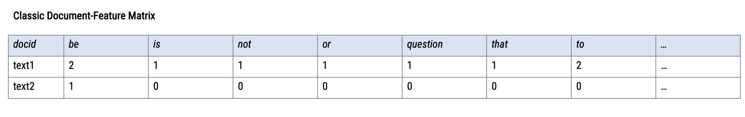 Classic machine learning models require a numerical representation of text (e.g., document-feature matrix)