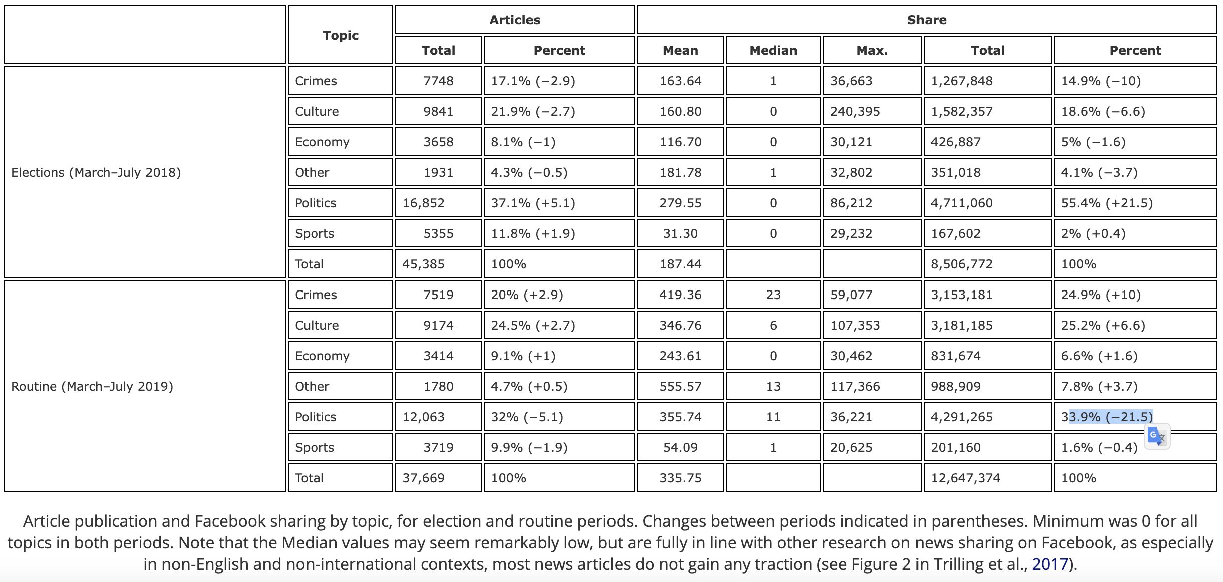 de León et al. (2021) explored how elections transform news sharing behaviour on Facebook
